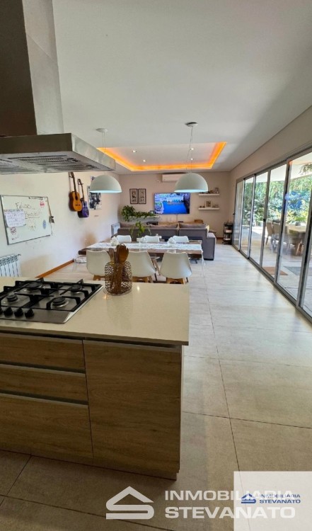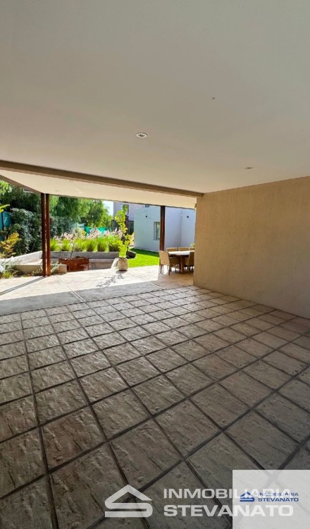 Su exterior no se queda atrás, una galerÃa semicubierta amplÃsima, con un hermoso patio intervenido con paisajismo, preparado para disfrutarlo todo el año, en invierno con un fogonero exquisito, y para el verano una refrescante piscina, lo que la convierte en un lugar ideal para toda la familia y seres queridos. Y cochera doble con churrasquera.