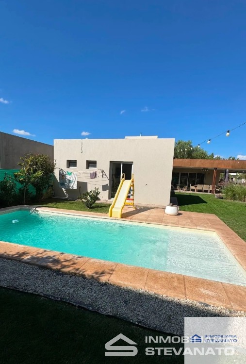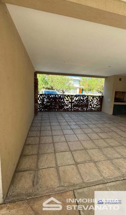 Su exterior no se queda atrás, una galerÃa semicubierta amplÃsima, con un hermoso patio intervenido con paisajismo, preparado para disfrutarlo todo el año, en invierno con un fogonero exquisito, y para el verano una refrescante piscina, lo que la convierte en un lugar ideal para toda la familia y seres queridos. Y cochera doble con churrasquera.